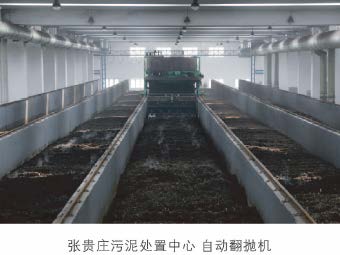 2013年,創業環保運行張貴莊污泥處置中心,該廠設計規模300噸/日,采用動靜結合的槽式污泥好氧發酵工藝,處理后的污泥含水率40%以下。