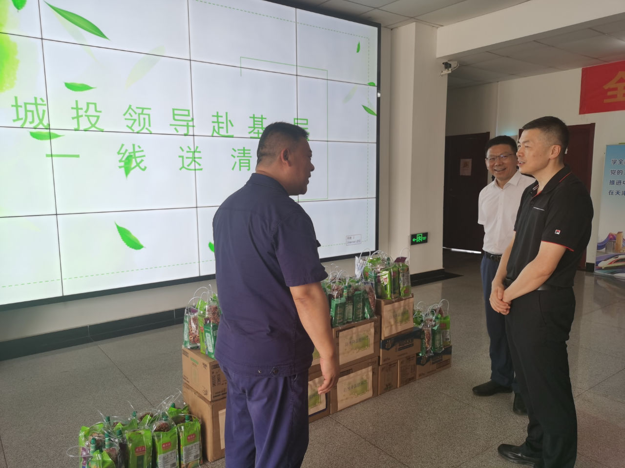 近日,集團黨委副書記、總經理鄭宏一行深入創業環保公司東郊污水處理廠調研,就東郊廠整體運營、光伏項目建設規劃、北部新區新能源項目、“雙碳”實踐基地建設等工作進行現場指導,并為奮戰在酷暑中的一線職工送去關懷和問候。