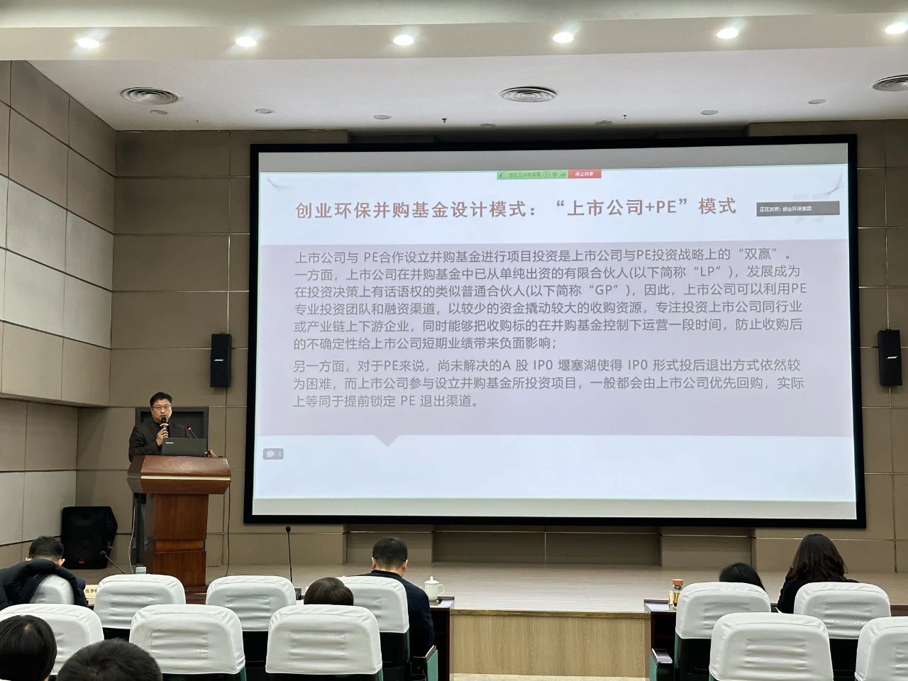此次培訓提升了企業管理人員對產業投資基金的認識,有助于更加系統性理解和把握產業投資基金的業務模式與運作機制,為今后在并購基金領域的投資和運作提供了有益指導。下一步,創業環保集團將把握好當前并購“活躍期”的重要機遇,繼續在項目并購和以并購基金模式實施并購方面雙向發力,力求在培育增量、提升質量工作上取得新突破。(文/圖:呂思琪)