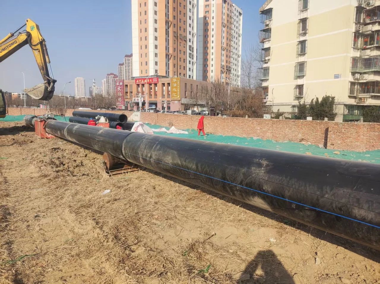 正在推進的金鐘河大街南側片區城市更新能源站項目,采用城市原生污水作為主要冷熱源,變廢為寶,為金鐘河大街南側片區城市更新區域內新建住宅、學校及公建提供能源保障服務,總服務面積為50.33萬平方米。配套取退水管線工程是該項目的重要組成部分,自春節前取得工程規劃許可證和配套管線工程施工許可證后,創業環保所屬綠能公司堅持“掛圖作戰”,2月8日PE管材及施工機械進場,2月9日開始管道熱熔連接,目前正在進行管道拉管施工,各項工作正緊鑼密鼓推進中。